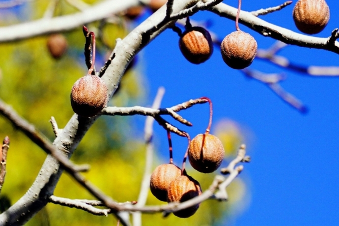 「冬芽」が日増しにふくらみ、「実」は次第に落ちていく、ハンカチの木(麻溝公園)(2026年1月撮影分)